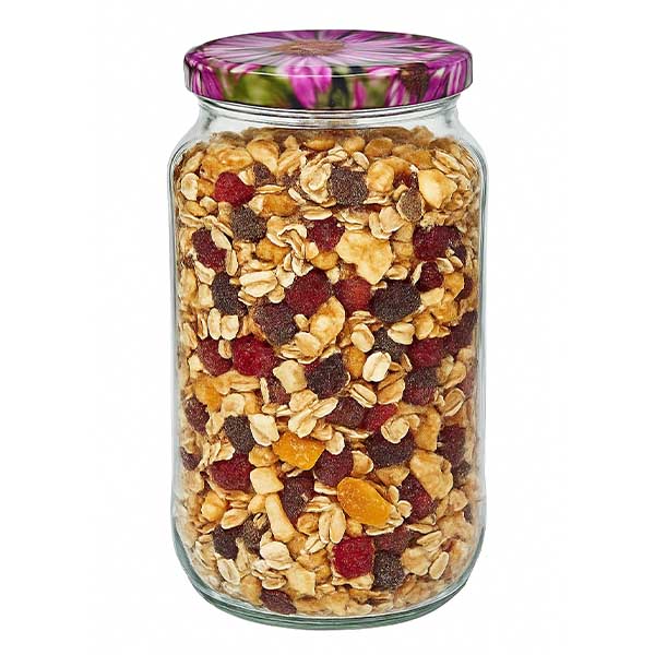 1062ml rond glas met BasicSeal deksel Bloemen decor UNiTWIST