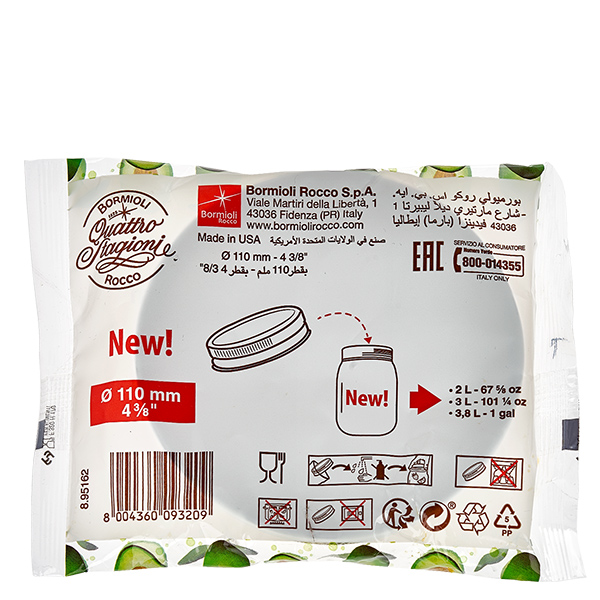 - Warmte- en koudebestendigheid: Het metalen deksel is hittebestendig tot ongeveer 100° Celsius. Alle Quattro Stagioni deksels kunnen worden ingevroren tot -40° Celsius.