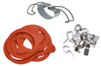 Hier vindt u WECK accessoires en rubberen ringen in alle maten. WECK rubberen ringen en klemmen mogen niet ontbreken bij het inmaken en wecken. De inmaakclips en rubberen ringen passen op de weckpotten en -flessen van het merk WECK. De clips zijn gemaakt van roestvrij staal en zijn daarom herbruikbaar. Ze worden gebruikt om het deksel en de bijpassende rubberen ring luchtdicht op de container te bevestigen. De inmaakclips hebben een gelijkblijvende sterke veerkracht, zodat het inmaken goed lukt. De rubberen ringen dienen als afdichtringen en worden eenvoudig tussen glas en deksel geplaatst. Clips en ringen zijn herbruikbaar, maar de inmaakrubber moet voor elk gebruik zorgvuldig worden gecontroleerd op broosheid en scheuren.