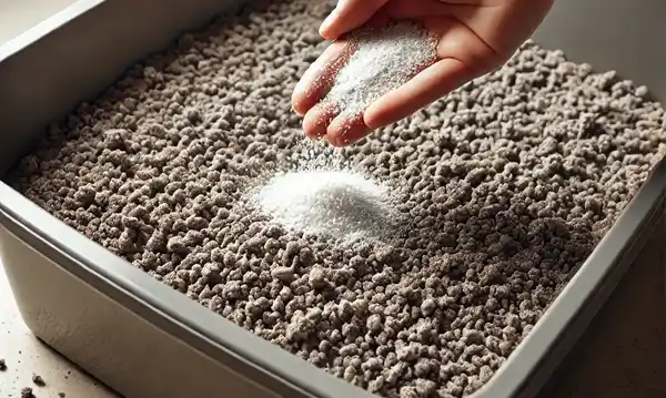 Sie streuen unter dem Streu eine Tüte Natron Pulver.