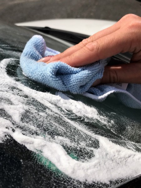 Gelijktijdig kun je de inweektijd gebruiken om de bekleding schoon te maken en zuiveringszout op een spons aanbrengen om insecten en andere vlekken van de autoruiten te verwijderen. Daarna gewoon afspoelen met schoon water en klaar! Het uitzicht is helder